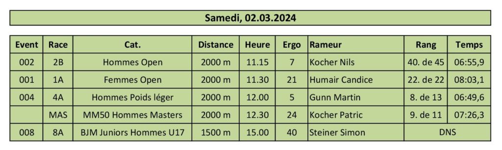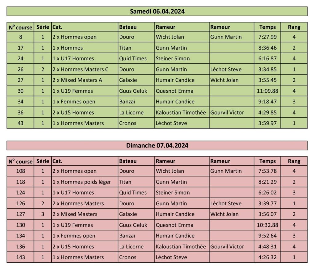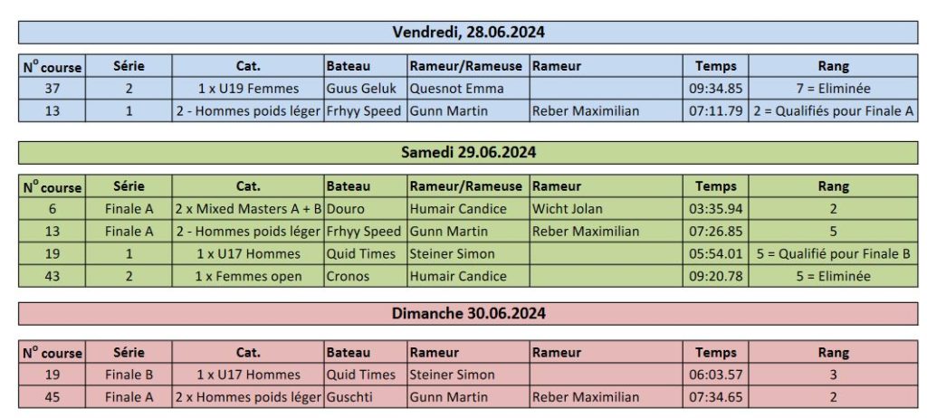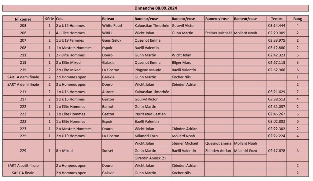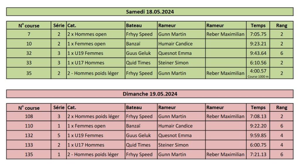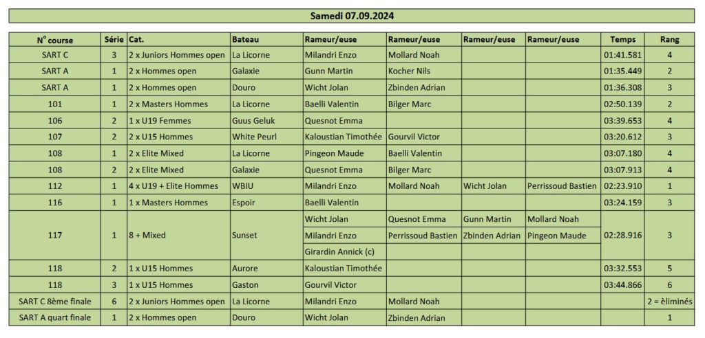 Résultats des régates 2024 Bern Boat Race 2024 Voir l’article Régate Lac Noir 2024 Voir l’article Championnats Suisses Rotsee 2024 Voir l’article Régate Sarnen 2024 Voir l’article Régate Cham 2024 Voir l’article Régate Schmerikon 2024 Voir l’article Régate Lauerz 2024 Voir l’article Régate Lake Lugano Rowing 2024 Voir l’article Swiss Rowing Indoors 2024 Voir l’article Résultats des années précédentes 2021 2022 2023 Partager : Cliquez pour partager sur Facebook(ouvre dans une nouvelle fenêtre) Facebook Cliquer pour partager sur X(ouvre dans une nouvelle fenêtre) X